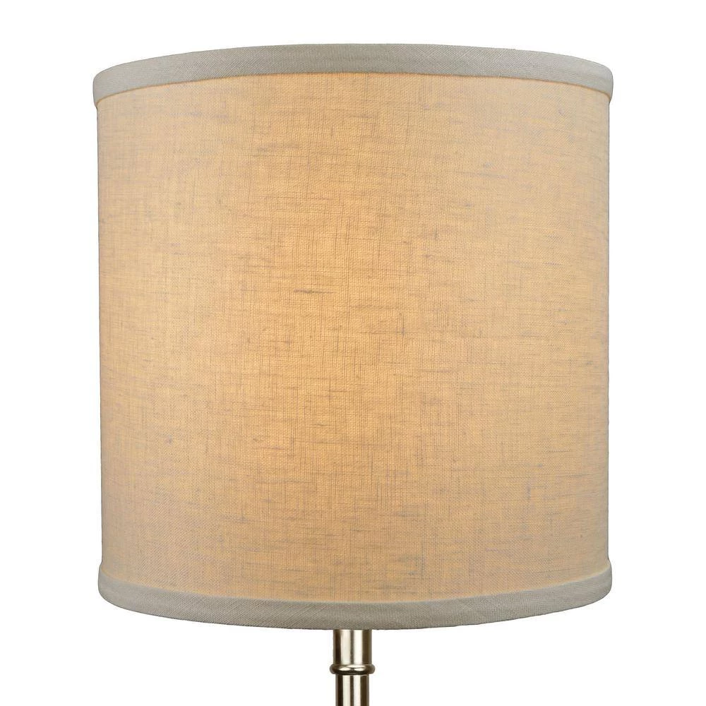 This Fenchel Shades lamp shade has a top diameter of 10.5 in., a bottom diameter of 10.5 in. and a slant height of 10.5 in. This attachment is called a washer attachment and is brass in color. It is also known as a spider attachment. If your lamp has a harp, then you will generally need a washer attachment. The inner-dimension of a washer attachment measures slightly over 1/2 in.