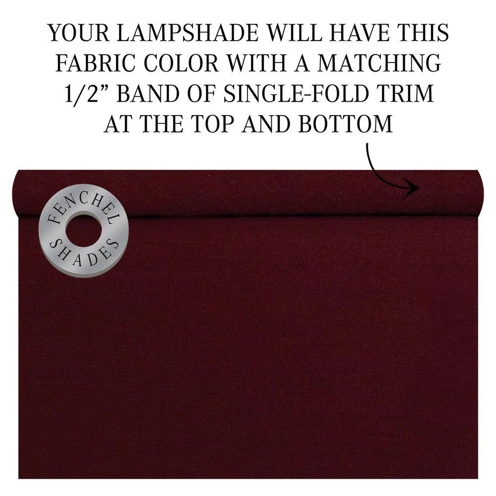 This Fenchel Shades lamp shade has a top diameter of 10 in., a bottom diameter of 10 in. and a slant height of 10 in. This attachment is called a washer attachment and is nickel in color. It is also known as a spider attachment. If your lamp has a harp, then you will generally need a washer attachment. The inner-dimension of a washer attachment measures slightly over 1/2 in.