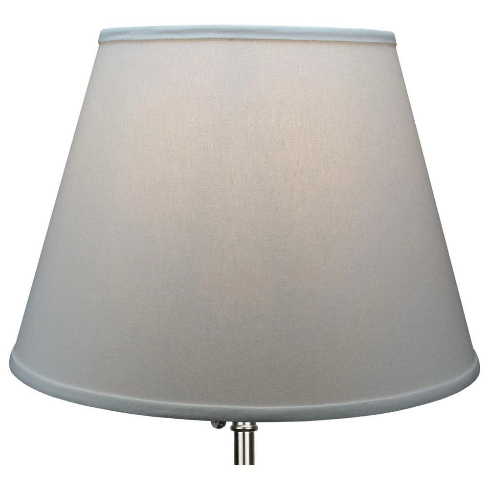 This Fenchel Shades lamp shade has a top diameter of 11 in., a bottom diameter of 18 in., and a slant height of 13 in., This attachment is called a washer attachment and is brass in color. It is also known as a spider attachment. If your lamp has a harp, then you will generally need a washer attachment. The inner-dimension of a washer attachment measures slightly over 1/2 in.