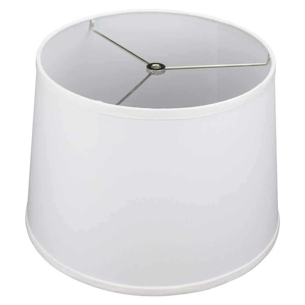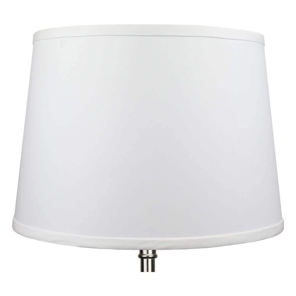 This Fenchel Shades lamp shade has a top diameter of 12 in., a bottom diameter of 14 in. and a slant height of 10 in. This attachment is called a washer attachment and is nickel in color. It is also known as a spider attachment. If your lamp has a harp, then you will generally need a washer attachment. The inner-dimension of a washer attachment measures slightly over 1/2 in.
