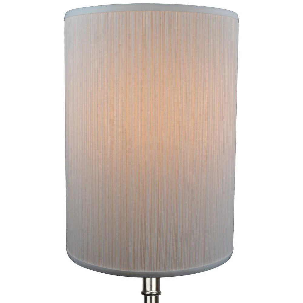This Fenchel Shades lamp shade has a top diameter of 14 in., a bottom diameter of 14 in., and a slant height of 20 in. This attachment is called a washer attachment and is nickel in color. It is also known as a spider attachment. If your lamp has a harp, then you will generally need a washer attachment. The inner-dimension of a washer attachment measures slightly over 1/2 in.