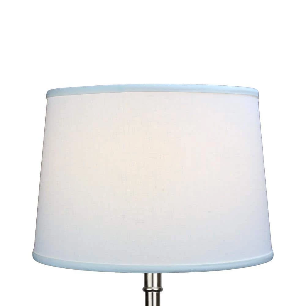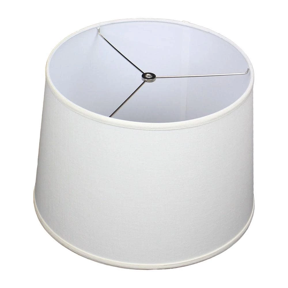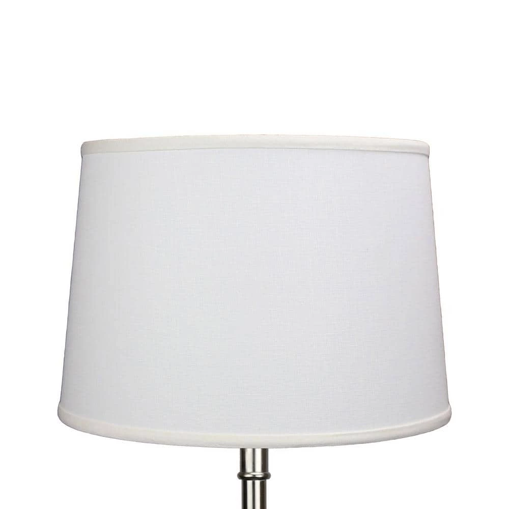 This Fenchel Shades lamp shade has a top diameter of 14 in., a bottom diameter of 16 in., and a slant height of 11 in., This attachment is called a washer attachment and is nickel in color. It is also known as a spider attachment. If your lamp has a harp, then you will generally need a washer attachment. The inner-dimension of a washer attachment measures slightly over 1/2 in.
