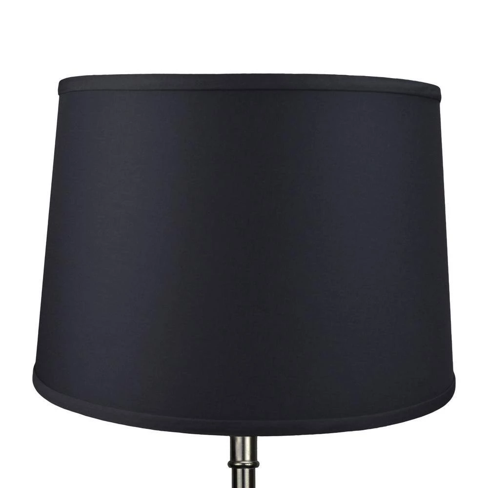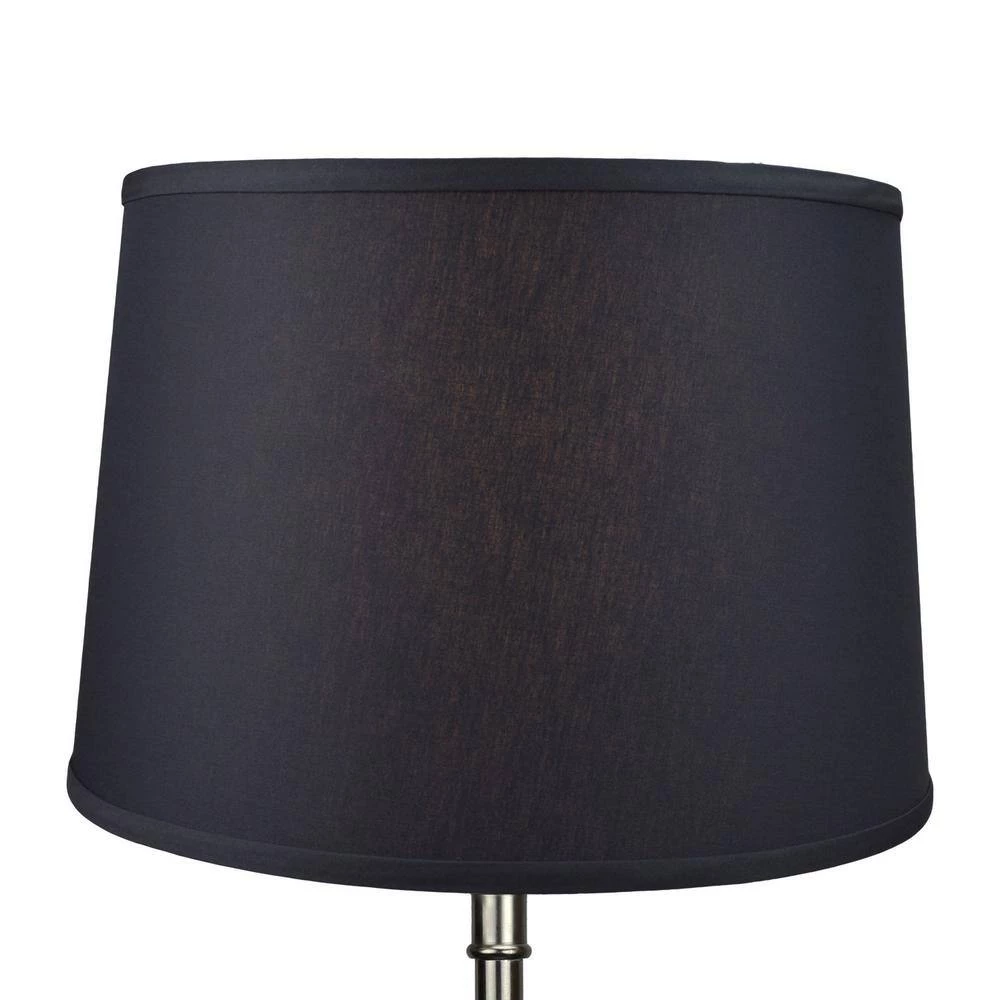 This Fenchel Shades lamp shade has a top diameter of 14 in., a bottom diameter of 16 in., and a slant height of 11 in., This attachment is called a washer attachment and is nickel in color. It is also known as a spider attachment. If your lamp has a harp, then you will generally need a washer attachment. The inner-dimension of a washer attachment measures slightly over 1/2 in.