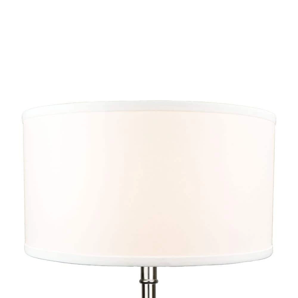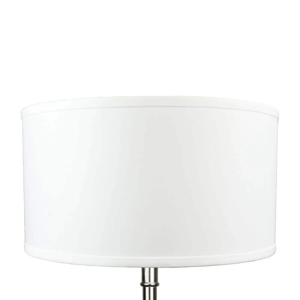 This Fenchel Shades lamp shade has a top diameter of 17 in., a bottom diameter of 17 in., and a slant height of 9 in. This attachment is called a washer attachment and is nickel in color. It is also known as a spider attachment. If your lamp has a harp, then you will generally need a washer attachment. The inner-dimension of a washer attachment measures slightly over 1/2 in.