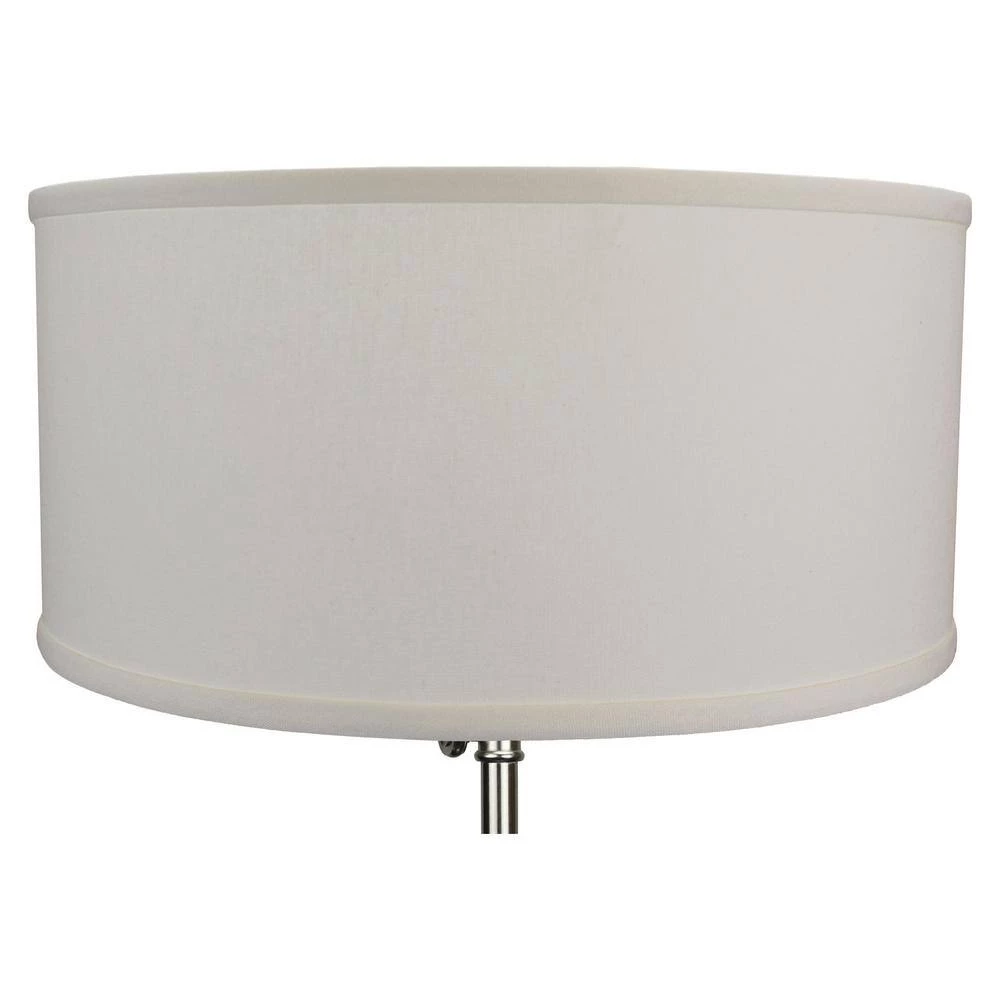 This Fenchel Shades lamp shade has a top diameter of 17 in., a bottom diameter of 17 in. and a slant height of 8 in. This attachment is called a washer attachment and is nickel in color. It is also known as a spider attachment. If your lamp has a harp, then you will generally need a washer attachment. The inner-dimension of a washer attachment measures slightly over 1/2 in.