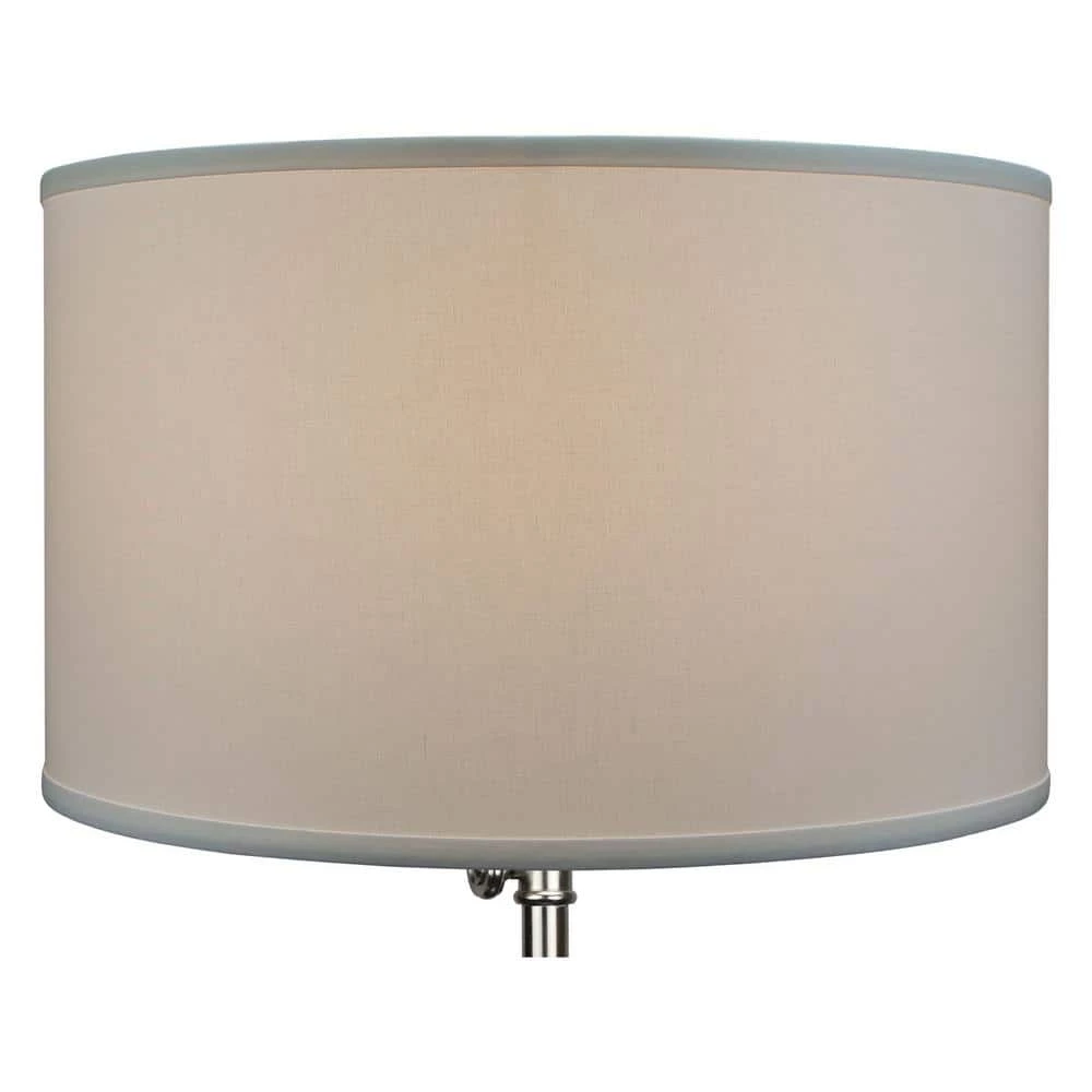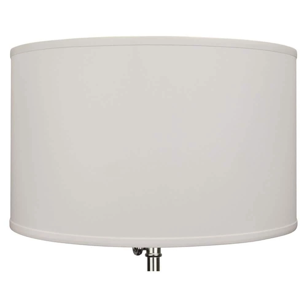 This Fenchel Shades lamp shade has a top diameter of 18 in., a bottom diameter of 18 in., and a slant height of 11 in. This attachment is called a washer attachment and is nickel in color. It is also known as a spider attachment. If your lamp has a harp, then you will generally need a washer attachment. The inner-dimension of a washer attachment measures slightly over 1/2 in.
