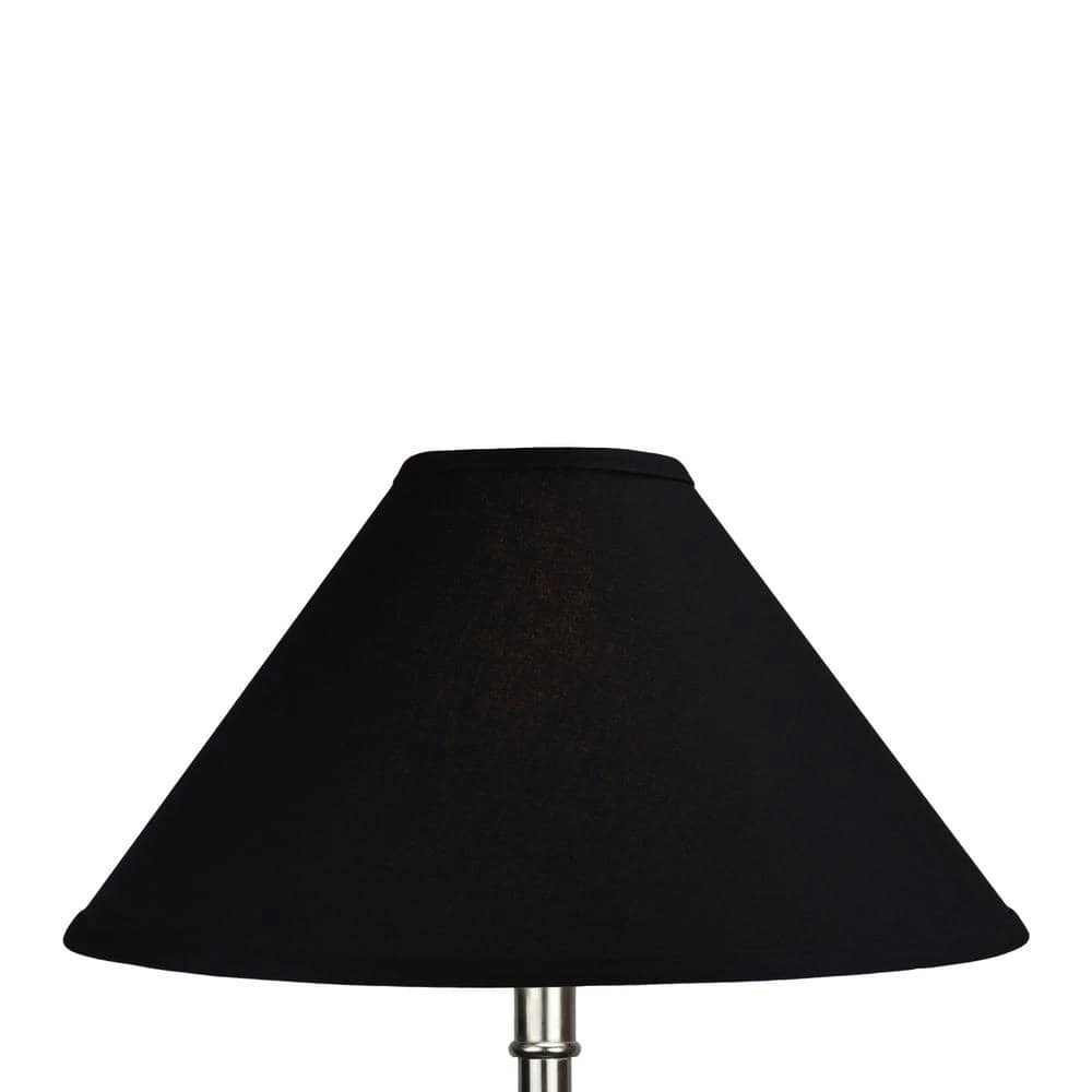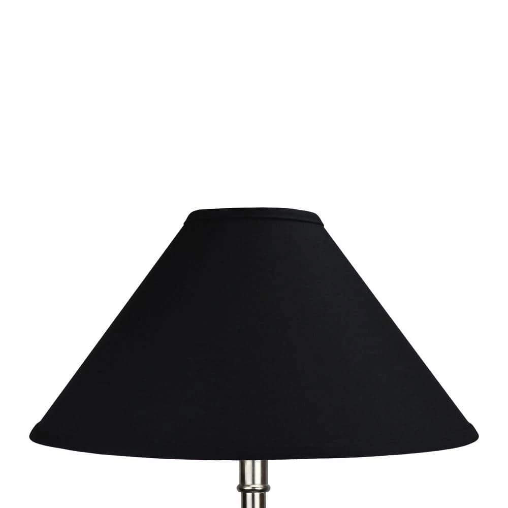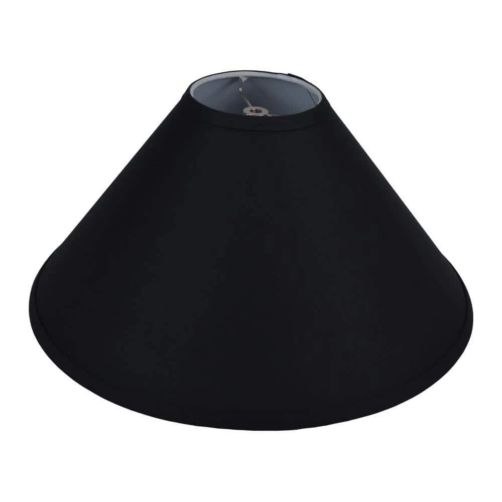 This Fenchel Shades lamp shade has a top diameter of 5 in., a bottom diameter of 18 in. and a slant height of 11 in. This attachment is called a washer attachment and is nickel in color. It is also known as a spider attachment. If your lamp has a harp, then you will generally need a washer attachment. The inner-dimension of a washer attachment measures slightly over 1/2 in.