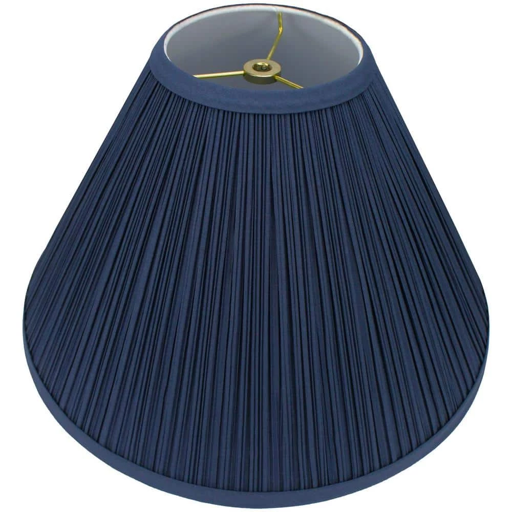 This Fenchel Shades lamp shade has a top diameter of 5 in., a bottom diameter of 15 in. and a slant height of 10 in. This attachment is called a washer attachment and is brass in color. It is also known as a spider attachment. If your lamp has a harp, then you will generally need a washer attachment. The inner-dimension of a washer attachment measures slightly over 1/2 in.