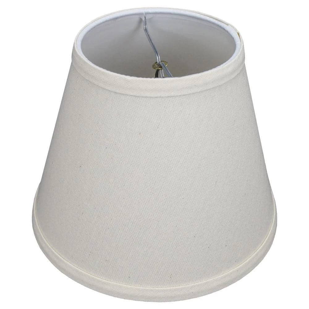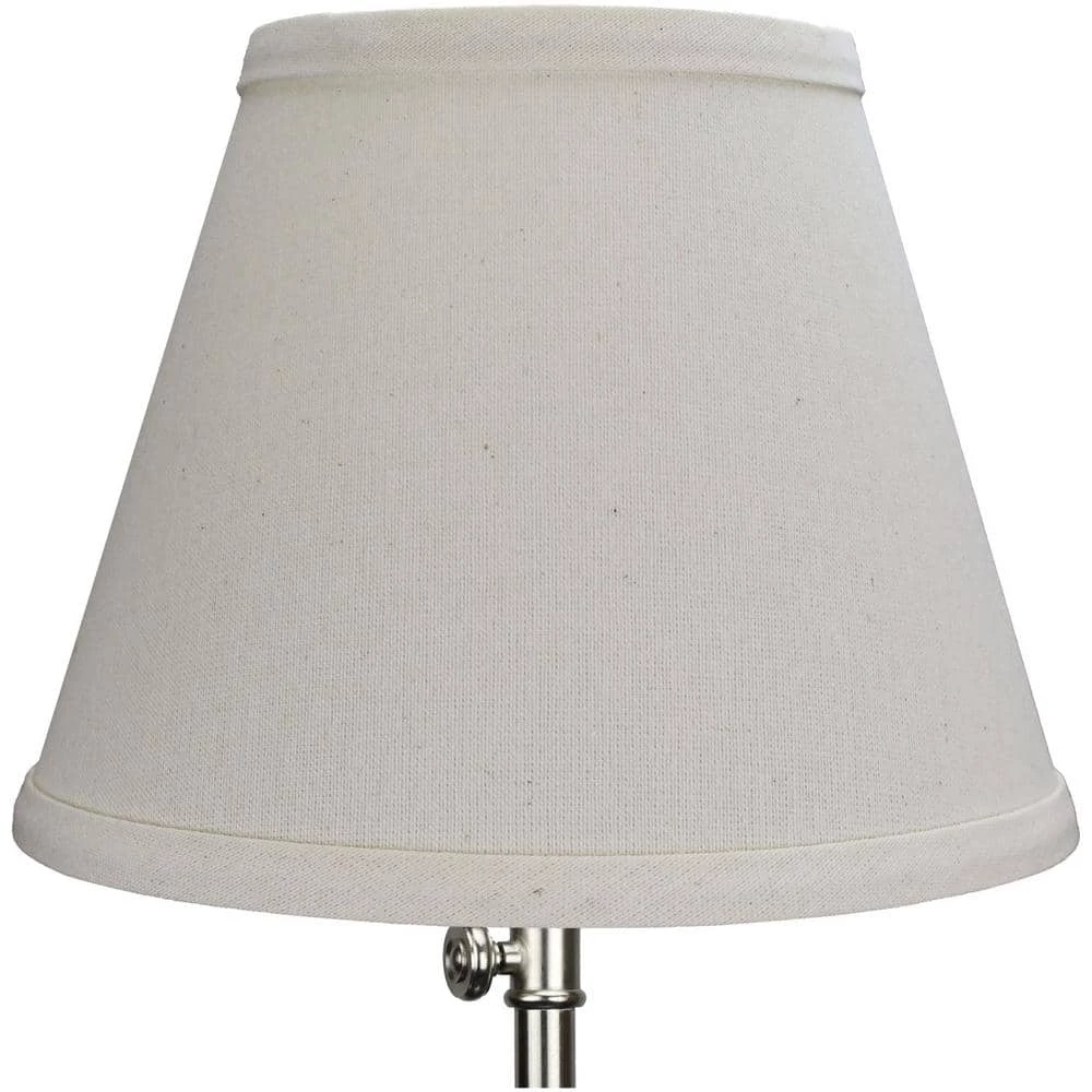 This Fenchel Shades lamp shade has a top diameter of 5 in., a bottom diameter of 9 in., and a slant height of 7 in. The attachment type is a bulb clip with nickel finish. This type of attachment clips on to a standard Edison-style light bulb. It is common for desktop lamps and smaller-sized lamp shades.