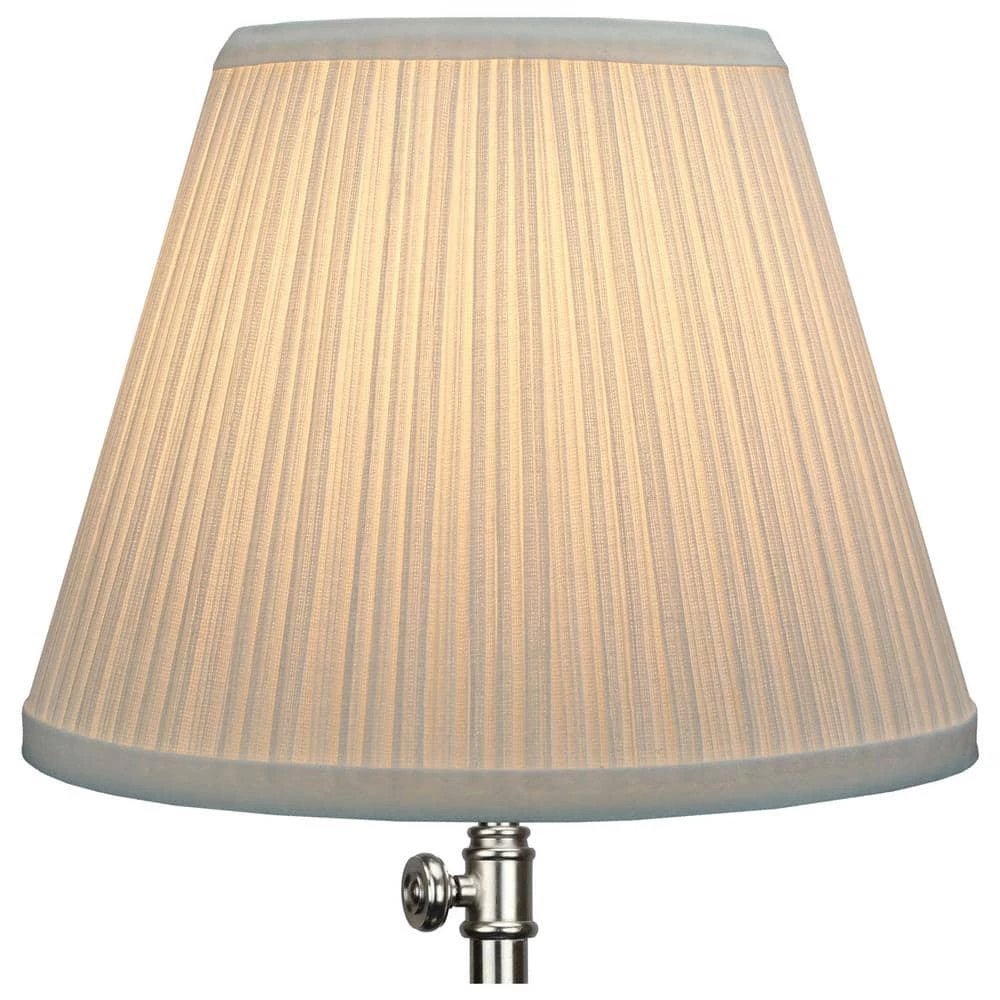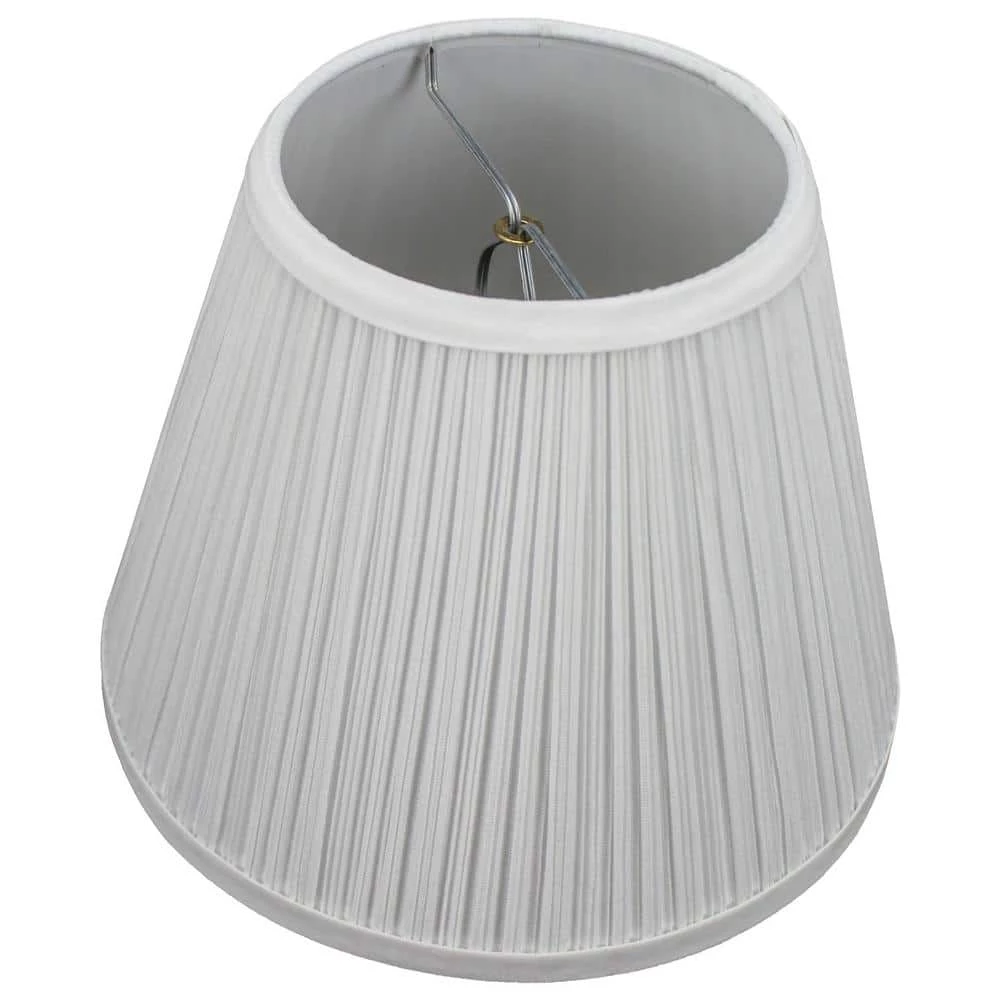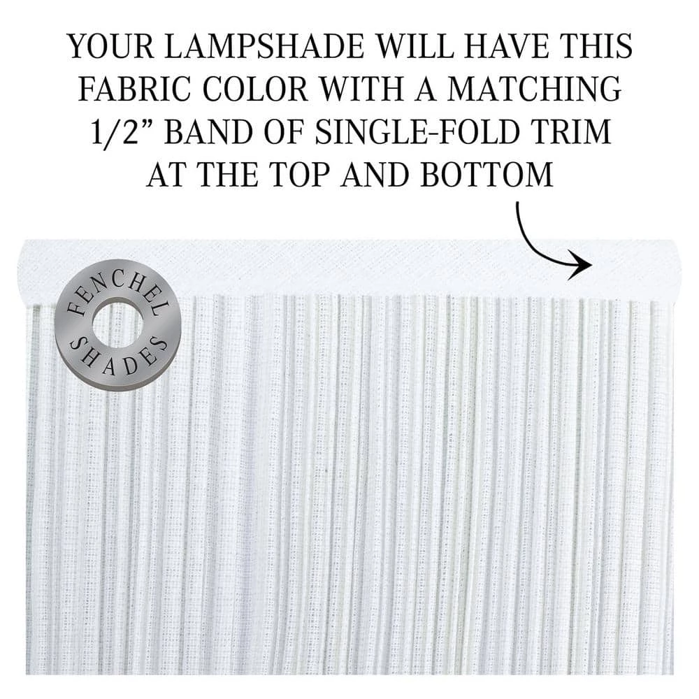 This Fenchel Shades lamp shade has a top diameter of 5 in., a bottom diameter of 9 in., and a slant height of 7 in. The attachment type is a bulb clip with nickel finish. This type of attachment clips on to a standard Edison-style light bulb. It is common for desktop lamps and smaller-sized lamp shades.
