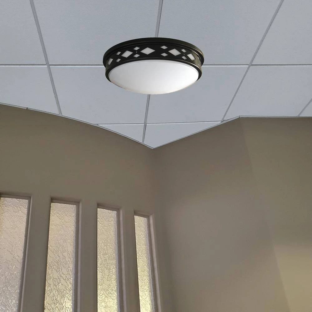 The modern elegant Dimmable high lumen output LED Diamond Lattice Flush Mount was designed to fulfill both elegance and high tech LED lighting efficiency. It is available in both brushed nickel and bronze finishes in three sizes. The lens cover is made with a blend of materials that evenly distribute the LED light and avoids yellowish with lapse of time. Quality manufacturing is assured with die form-stamped cold rolled steel housing. Choose your color temperature warm or cool white.