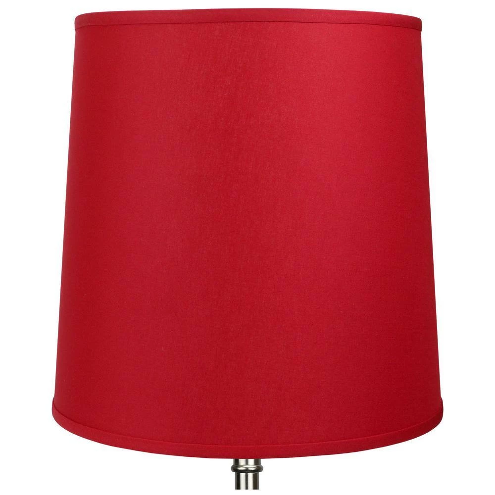 This Fenchel Shades lamp shade has a top diameter of 13 in., a bottom diameter of 15 in., and a slant height of 15 in. This attachment is called a washer attachment and is nickel in color. It is also known as a spider attachment. If your lamp has a harp, then you will generally need a washer attachment. The inner-dimension of a washer attachment measures slightly over 1/2 in.