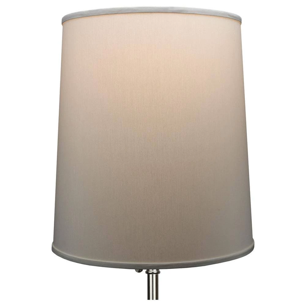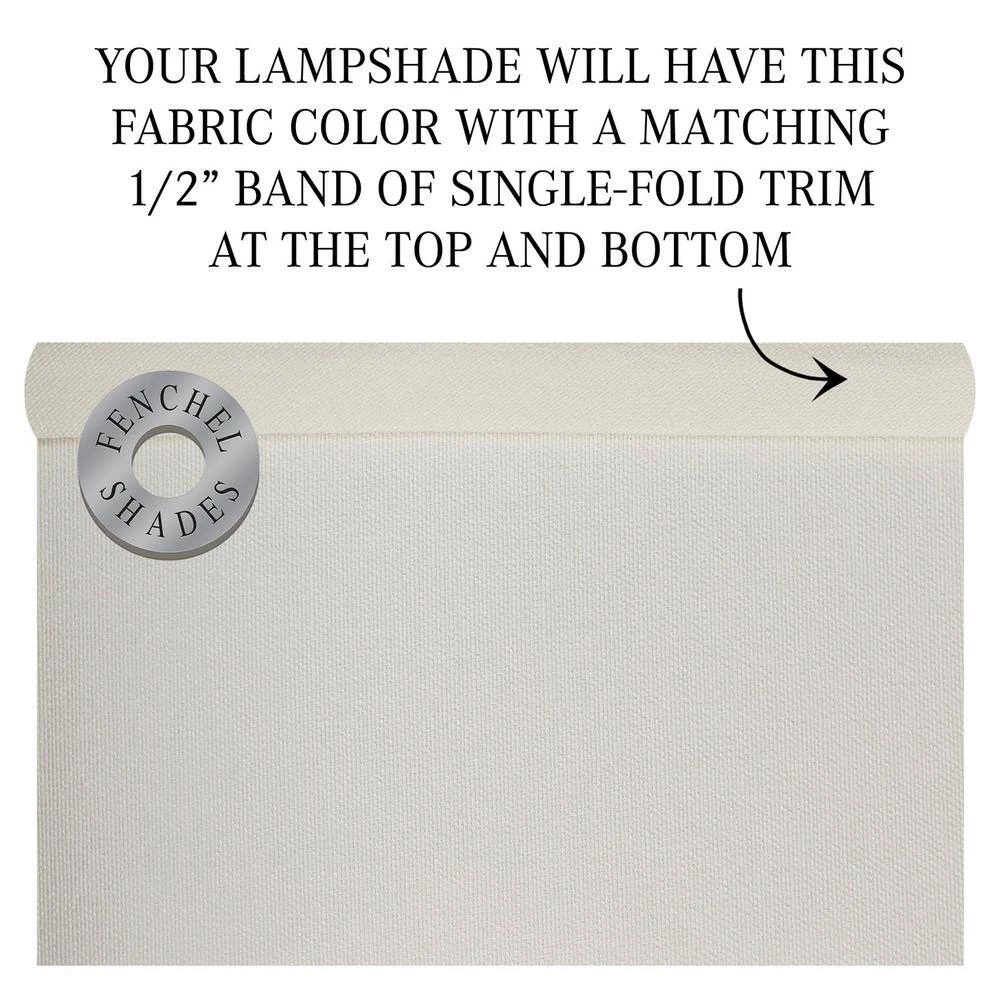 This Fenchel Shades lamp shade has a top diameter of 13 in., a bottom diameter of 15 in. and a slant height of 17 in. This attachment is called a washer attachment and is brass in color. It is also known as a spider attachment. If your lamp has a harp, then you will generally need a washer attachment. The inner-dimension of a washer attachment measures slightly over 1/2 in.