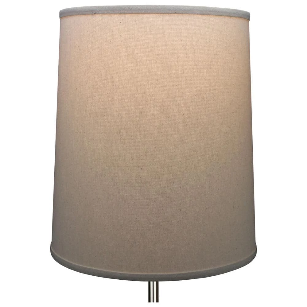 This Fenchel Shades lamp shade has a top diameter of 13 in., a bottom diameter of 15 in. and a slant height of 17 in. This attachment is called a washer attachment and is nickel in color. It is also known as a spider attachment. If your lamp has a harp, then you will generally need a washer attachment. The inner-dimension of a washer attachment measures slightly over 1/2 in.
