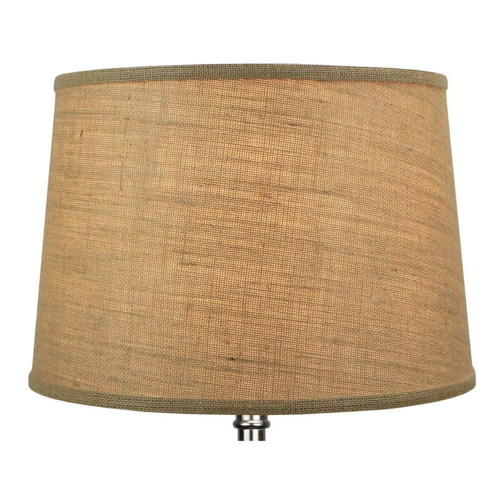 This Fenchel Shades lamp shade has a top diameter of 14 in., a bottom diameter of 16 in., and a slant height of 11 in. This attachment is called a washer attachment and is nickel in color. It is also known as a spider attachment. If your lamp has a harp, then you will generally need a washer attachment. The inner-dimension of a washer attachment measures slightly over 1/2 in.