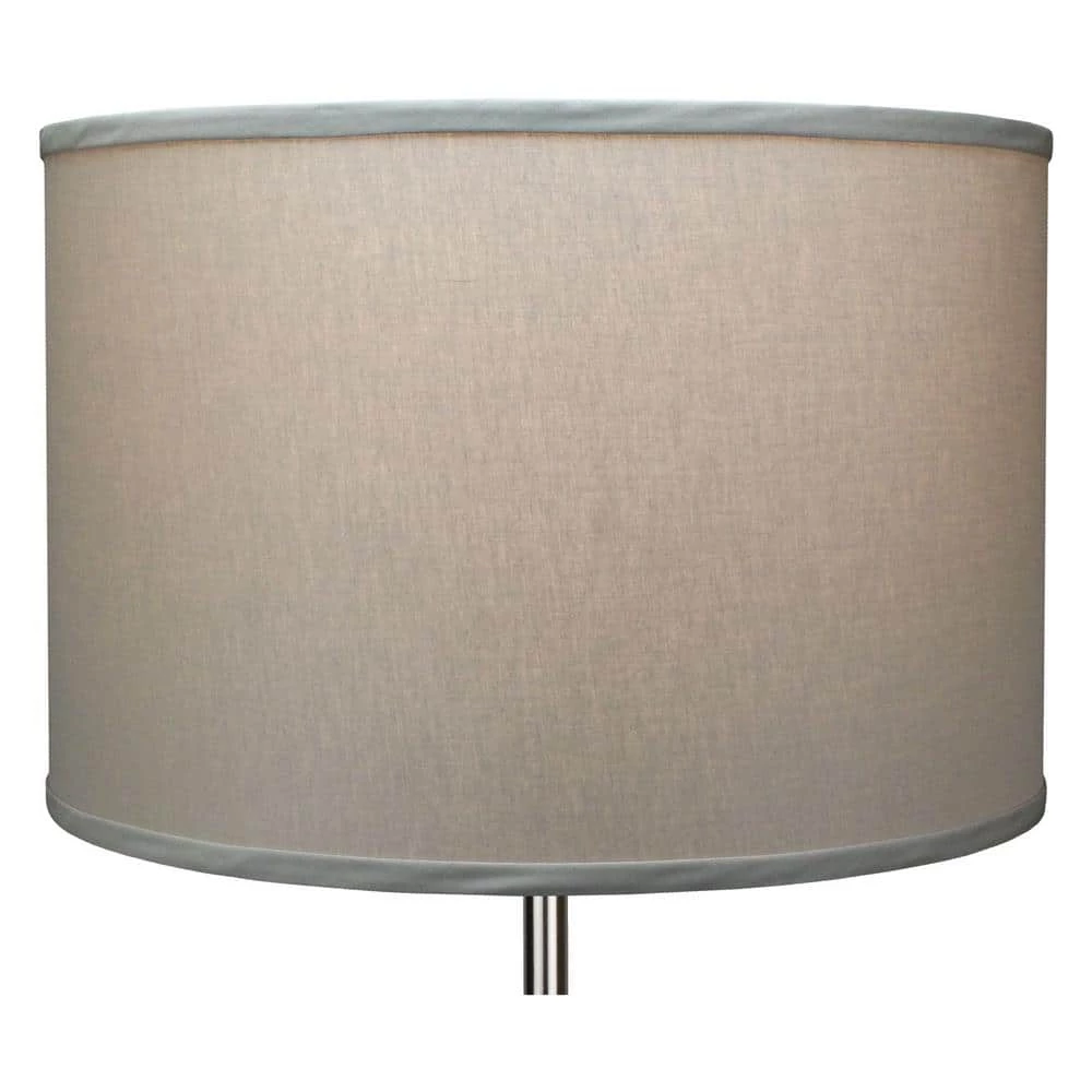 This Fenchel Shades lamp shade has a top diameter of 18 in., a bottom diameter of 18 in., and a slant height of 12 in. This attachment is called a washer attachment and is nickel in color. It is also known as a spider attachment. If your lamp has a harp, then you will generally need a washer attachment. The inner-dimension of a washer attachment measures slightly over 1/2 in.