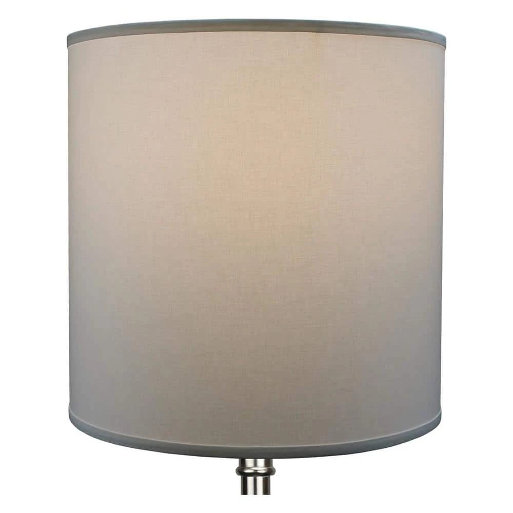This Fenchel Shades lamp shade has a top diameter of 18 in., a bottom diameter of 18 in., and a slant height of 18 in. This attachment is called a washer attachment and is nickel in color. It is also known as a spider attachment. If your lamp has a harp, then you will generally need a washer attachment. The inner-dimension of a washer attachment measures slightly over 1/2 in.