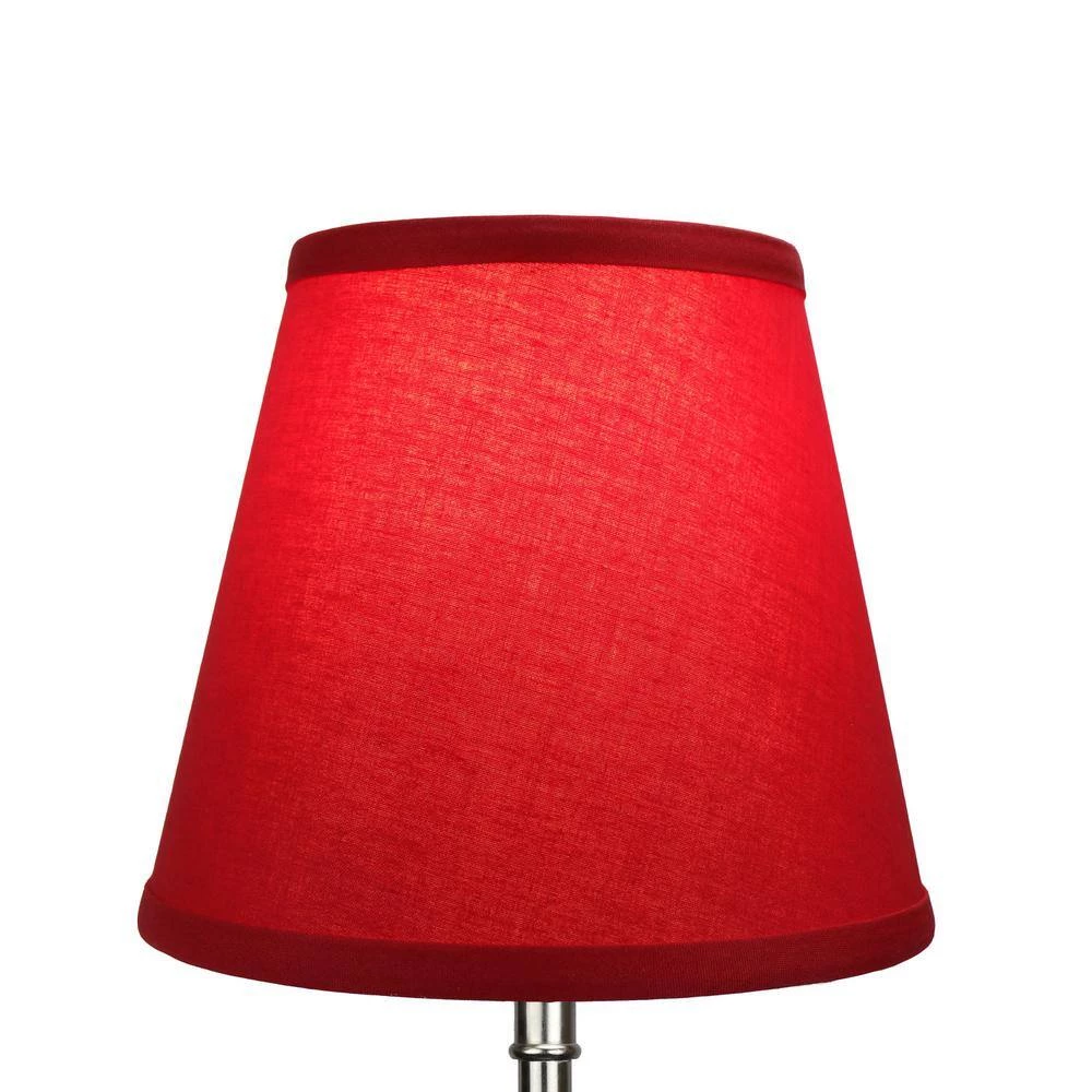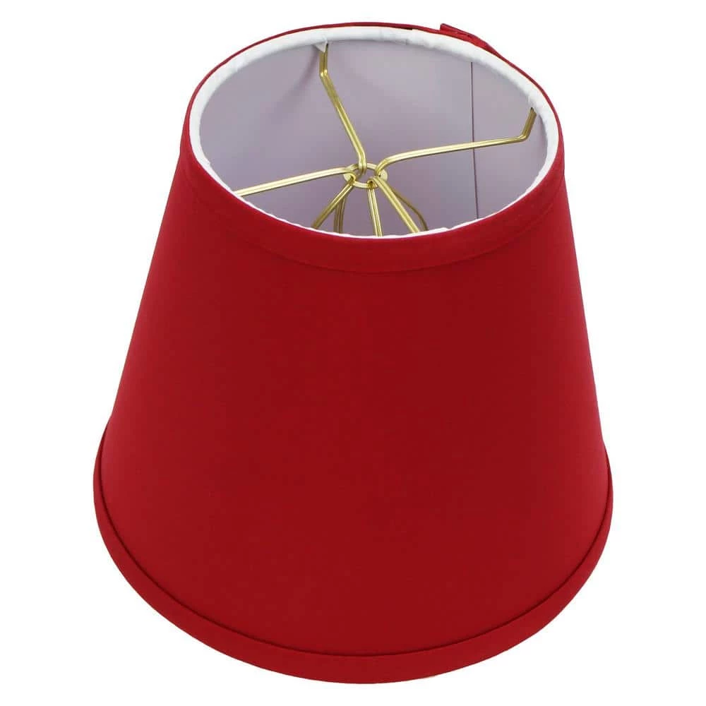 This Fenchel Shades lamp shade has a top diameter of 5 in., a bottom diameter of 8 in., and a slant height of 7 in. The attachment type is a bulb clip with brass finish. This type of attachment clips on to a standard Edison-style light bulb. It is common for desktop lamps and smaller-sized lamp shades.