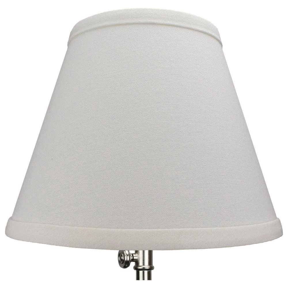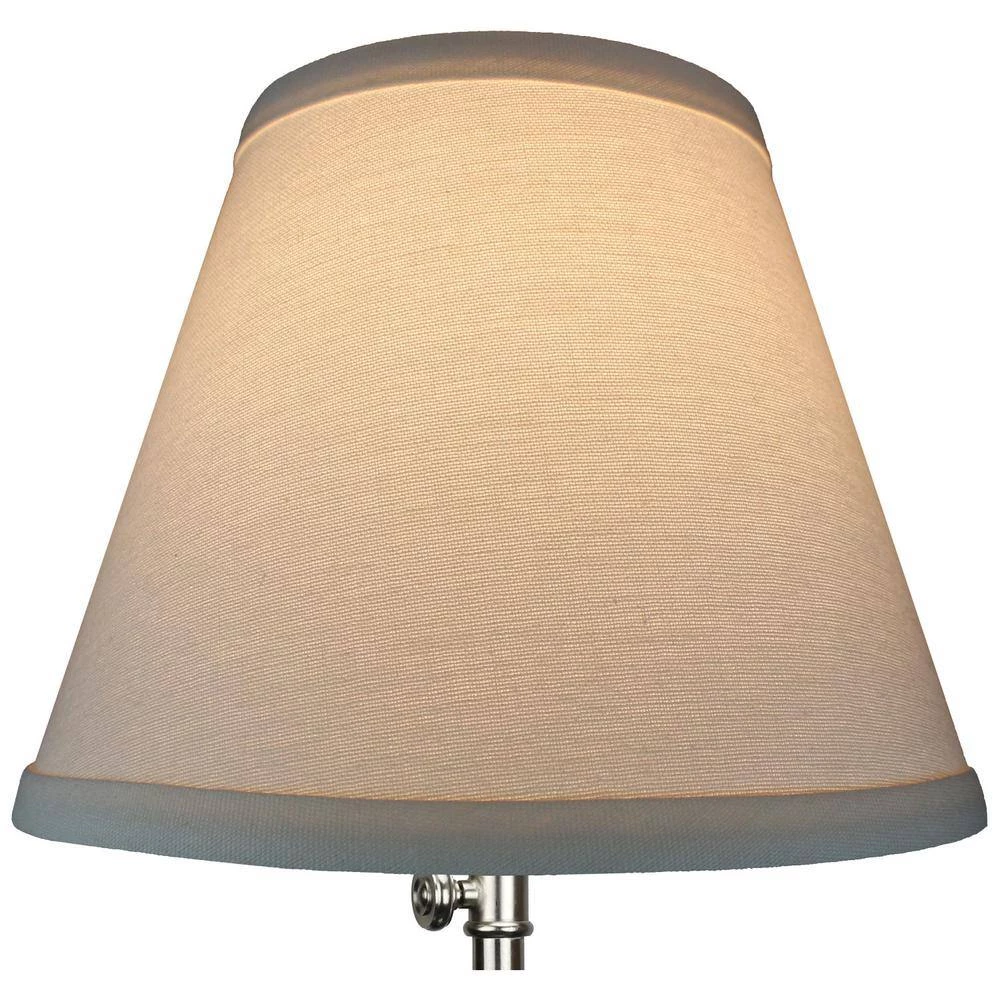 This Fenchel Shades lamp shade has a top diameter of 5 in., a bottom diameter of 9 in., and a slant height of 7 in. The attachment type is a bulb clip with nickel finish. This type of attachment clips on to a standard Edison-style light bulb. It is common for desktop lamps and smaller-sized lamp shades.
