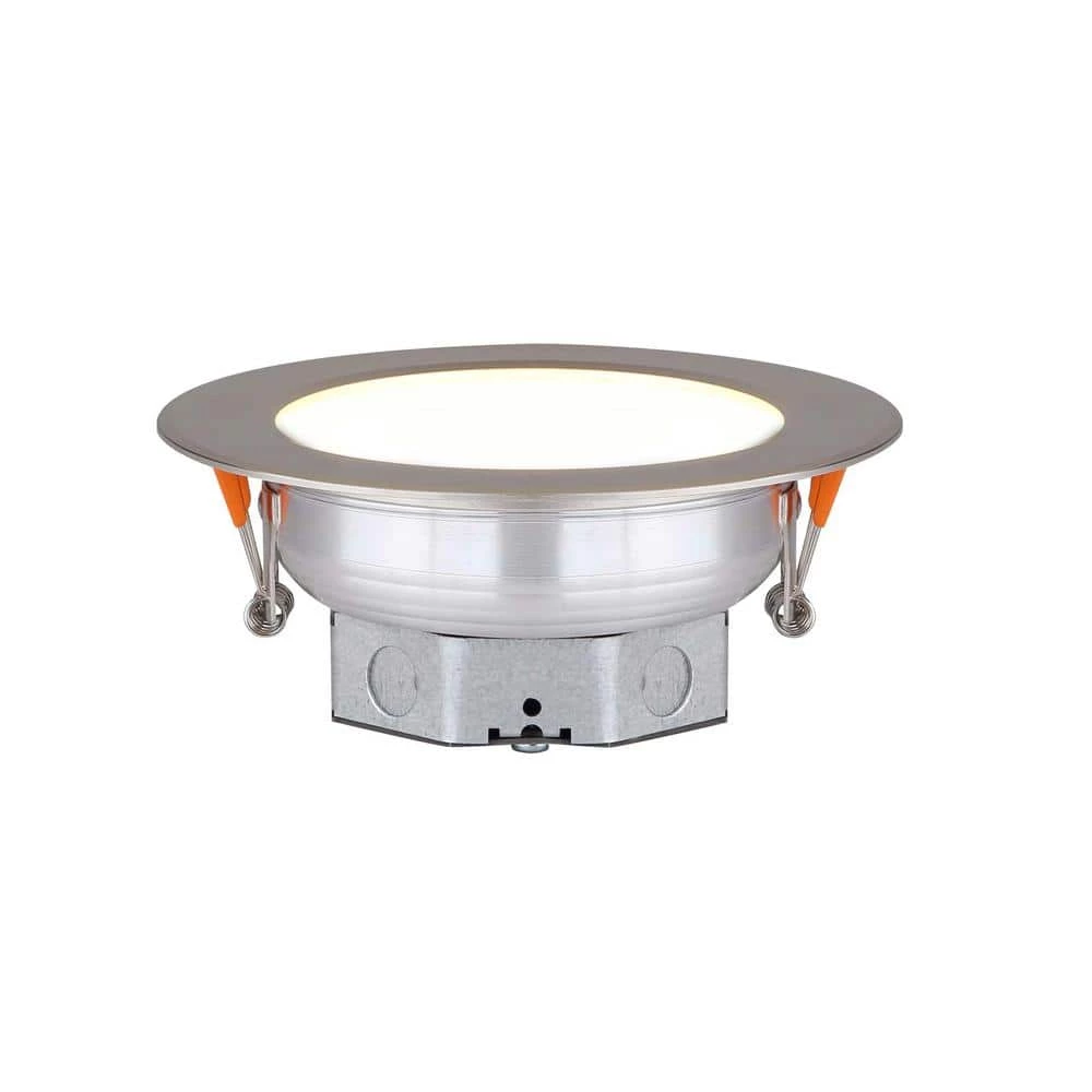 The Amax down light fixture LED-SR4P/NKL is an elegant addition to your bedroom, bathroom, vanity or foyer areas, a true touch of luxury and solid sumptuousness that can be seen from afar with little effort. The LED-SR4P/NKL down light fixture has been designed with a solid nickel frame that displays quality craftsmanship. This is a contemporary energy-efficient designed 5.5 in., 10-Watt dimmable 580 Lumens output wall mount fixture with an integrated LED array that provides an ample amount of long lasting light and costs little to operate. It uses less energy than fluorescent lights, lasts longer and is maintenance free. This includes a heavy gauge and low profile steel housing and a white thick diffuser. Perfect for ceiling and wall mounting applications. The LED-SR4P/NKL is available in warm White (3000K). This includes mounting hardware and an installation guide. Note: This elegant and energy-efficient ceiling fixture is dimmable when used with a compatible LED rated dimmer. The LED-SR4P/NKL measures 2.69 in. height, 5.5 in. width.